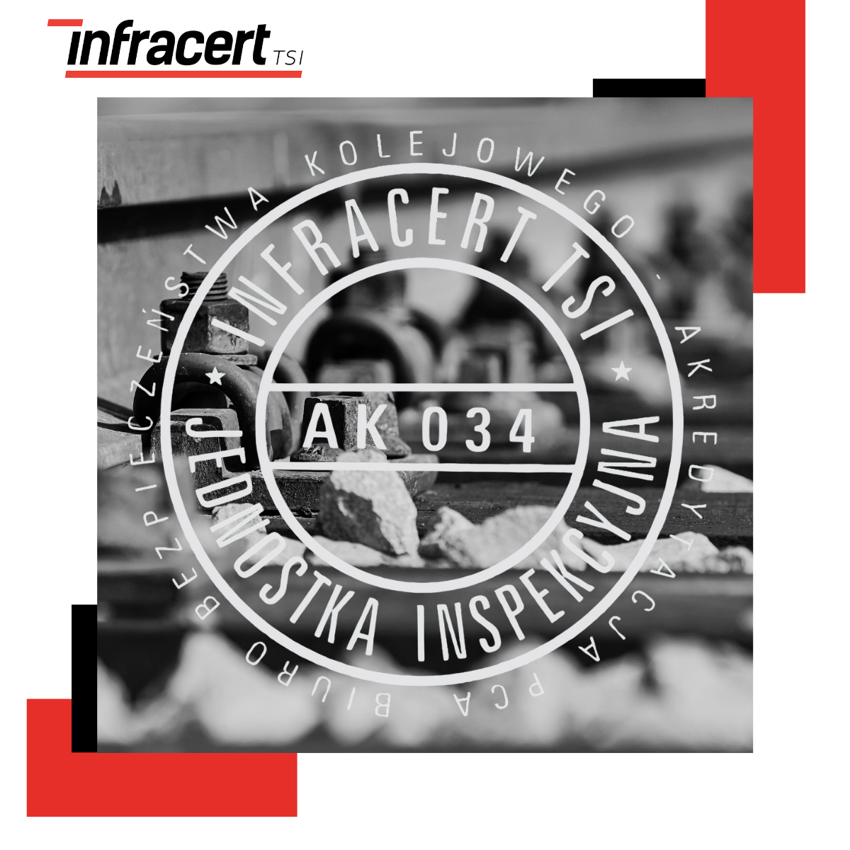 INFRACERT TSI jest polską Jednostką Inspekcyjną, akredytowaną przez Polskie Centrum Akredytacji nr AK 034. Posiadamy pełne uprawnienia do realizacji procesów inspekcji w obszarze wszystkich podsystemów strukturalnych: „Tabor”, „Sterowanie - urządzenia pokładowe”, „Sterowanie - urządzenia przytorowe”, „Infrastruktura”, „Energia” oraz funkcjonalnych: „Ruch kolejowy”, „Utrzymanie” oraz „Aplikacje telematyczne”. Działamy w oparciu o wdrożone wewnętrzne procedury, zgodne z wymaganiami dokumentów normatywnych, w tym m.in.: PN-EN ISO/IEC 17020 – wymagania dotyczące działania różnych rodzajów jednostek przeprowadzających inspekcje oraz Rozporządzeniem nr 402/2013 w sprawie Wyceny i oceny ryzyka w transporcie kolejowym.